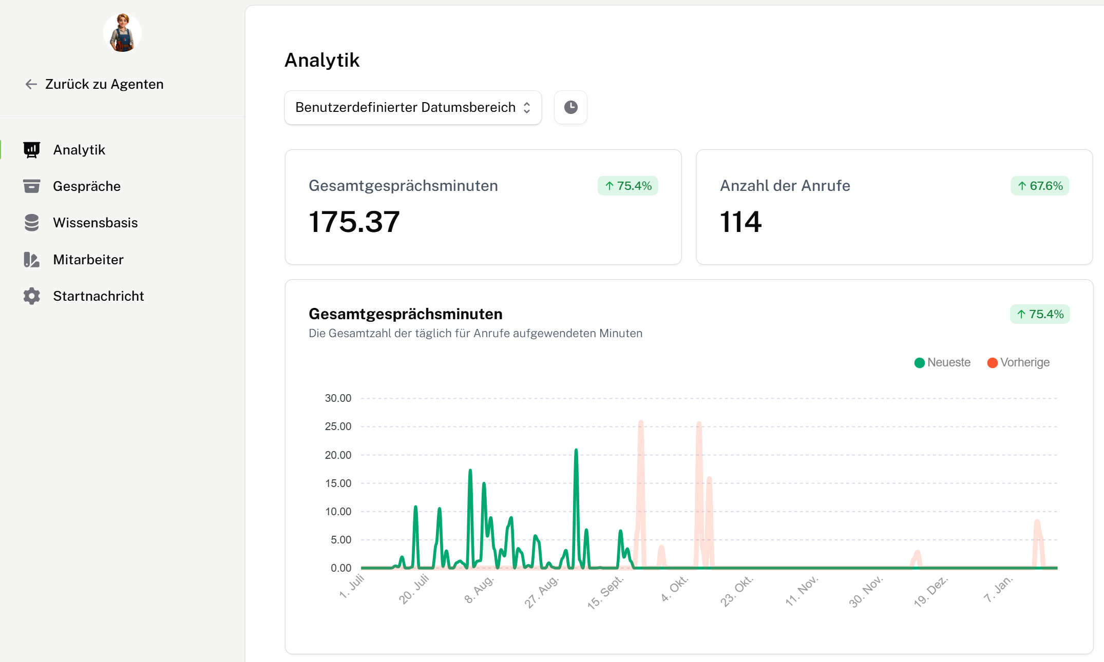 Heykiki wird individuell auf Ihren Betrieb eingestellt, vom Begrüßungstext über Öffnungszeiten, Notdienstlogik und Weiterleitungen bis hin zu branchenspezifischen Fragen. Sie kennt die Leistungen, spricht im Ton des Betriebs und kann Namen Ihrer Mitarbeiter berücksichtigen.